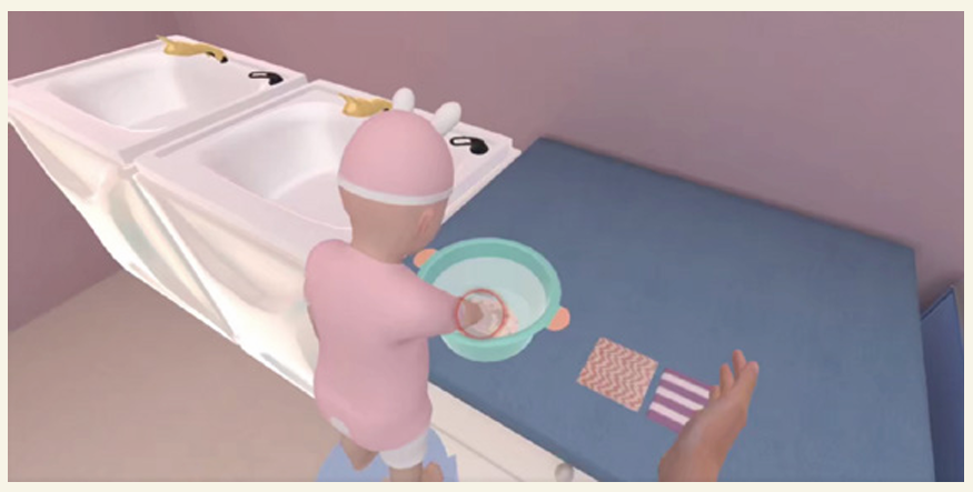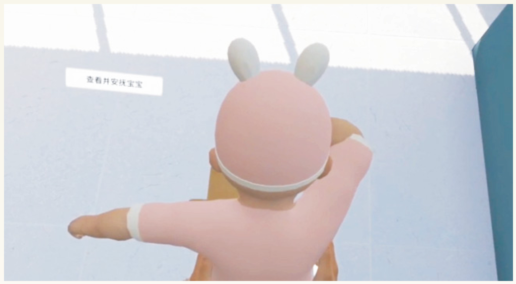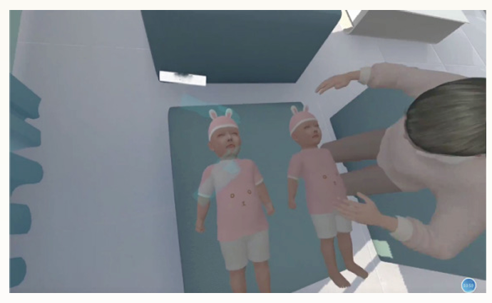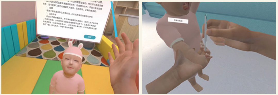 软件结合虚拟现实技术构建而成。软件分为:婴幼儿抚触、婴幼儿被动操、幼儿沐浴、幼儿发热护理、幼儿肺炎护理、幼儿湿疹护理、幼儿腹泻护理等模块。