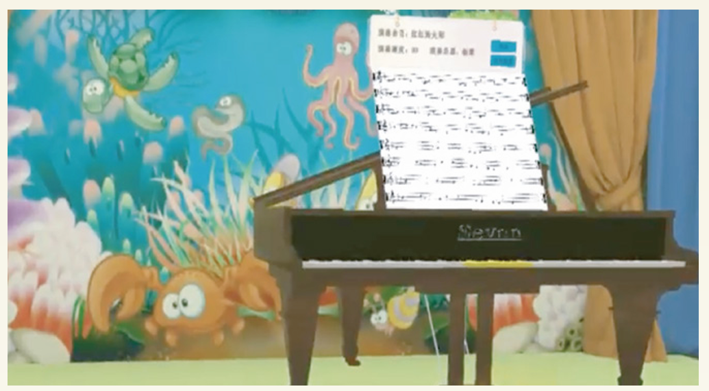 软件包含乐理环境创设、乐器环境创设和音乐表演环境创设三大模块,系统以图文形式提供音乐教室环境创设的概要说明。学生可使用交互设备对音乐教室场景中的文化墙、门窗地面、剪刀等建筑模型进行转换方向、位置等操作进行建筑物的摆放,体验音乐环境创设过程。